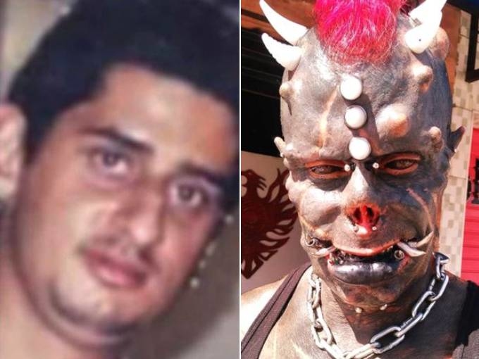 Old  Default Người đàn ông được ví là 'quỷ Satan' v́ cấy sừng, cắt mũi, xăm h́nh kín người