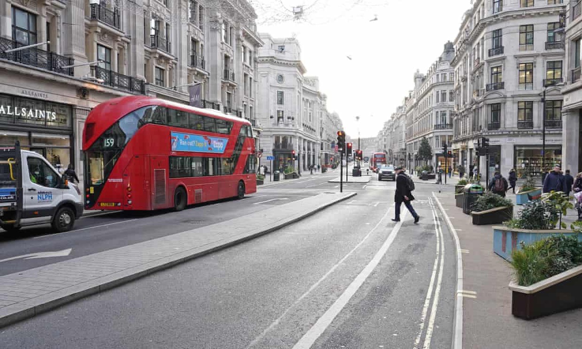 Có rất ít người xuất hiện trên phố Regent thường nhộn nhịp ở trung tâm London vào sáng 22/12. Ảnh: Ian West/PA.