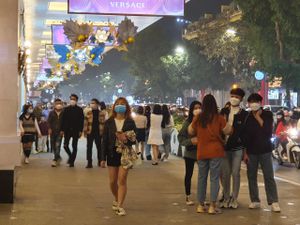 Ghi nhận của PV Đại Đoàn Kết Online, tại nhiều nhà hàng, quán ăn vùng vàng, người dân vẫn không chủ động trong việc quét QR Code khai báo y tế, vẫn còn tình trạng người dân tụ tập trà đá vỉa hè, không đeo khẩu trang…Chỉ tính riêng trong ngày lễ Noel, nhiều tuyến đường của thủ đô trở nên đông nghẹt vì người dân đổ xô ra đường chơi lễ. Dù Nhà thờ Lớn Hà Nội đóng cửa, hạn chế người dự lễ tuy nhiên các tuyến phố Hàng Mã, Tràng Tiền…lại tập trung đông đúc người dân đến tham quan, chụp ảnh…Nhiều nhóm bạn trẻ sẵn sàng tháo khẩu trang nơi công cộng, không thực hiện 5K…