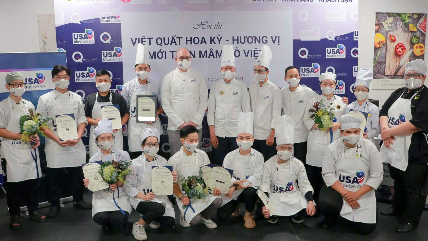 Ngày 28.12, các đầu bếp trẻ và sinh viên ngành nhà hàng kết hợp món ăn Việt Nam ngày tếT với trái việt quất, mang đến hương vị mới lạ và kích thích thị giác người xem như gỏi cuốn việt quất, chả việt quất chay…