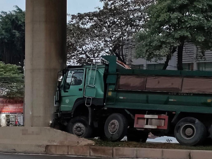 Tới khu vực số nhà 58 Cầu Diễn, phường Phú Diễn, quận Bắc Từ Liêm, xe này mất lái, tông trúng trụ số P103 đường sắt đô thị Nhổn - ga Hà Nội. Cú tông mạnh khiến cabin xe bốc cháy.