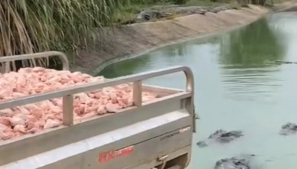 Thì ra, đây là một hồ chăn nuôi cá sấu. Và với độ nguy hiểm của loài cá này thì bọn trộm cũng phải dè chừng rất nhiều. Tất nhiên, với những người chăn nuôi cũng vậy. Việc cho cá ăn hay các công tác vệ sinh hồ đều phải hết sức cẩn trọng, tránh xảy ra nguy hiểm. Như trong video, việc cho cá sấu trong hồ ăn được tiến hành bằng cách đổ từ xe tải xuống chứ con người không tiếp xúc trực tiếp.