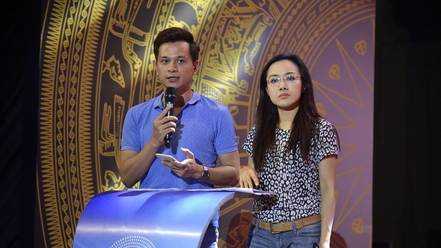 BTV Hoài Anh dẫn chương trình cùng nhà báo Quang Minh của ban Thời sự VTV vào năm 2015