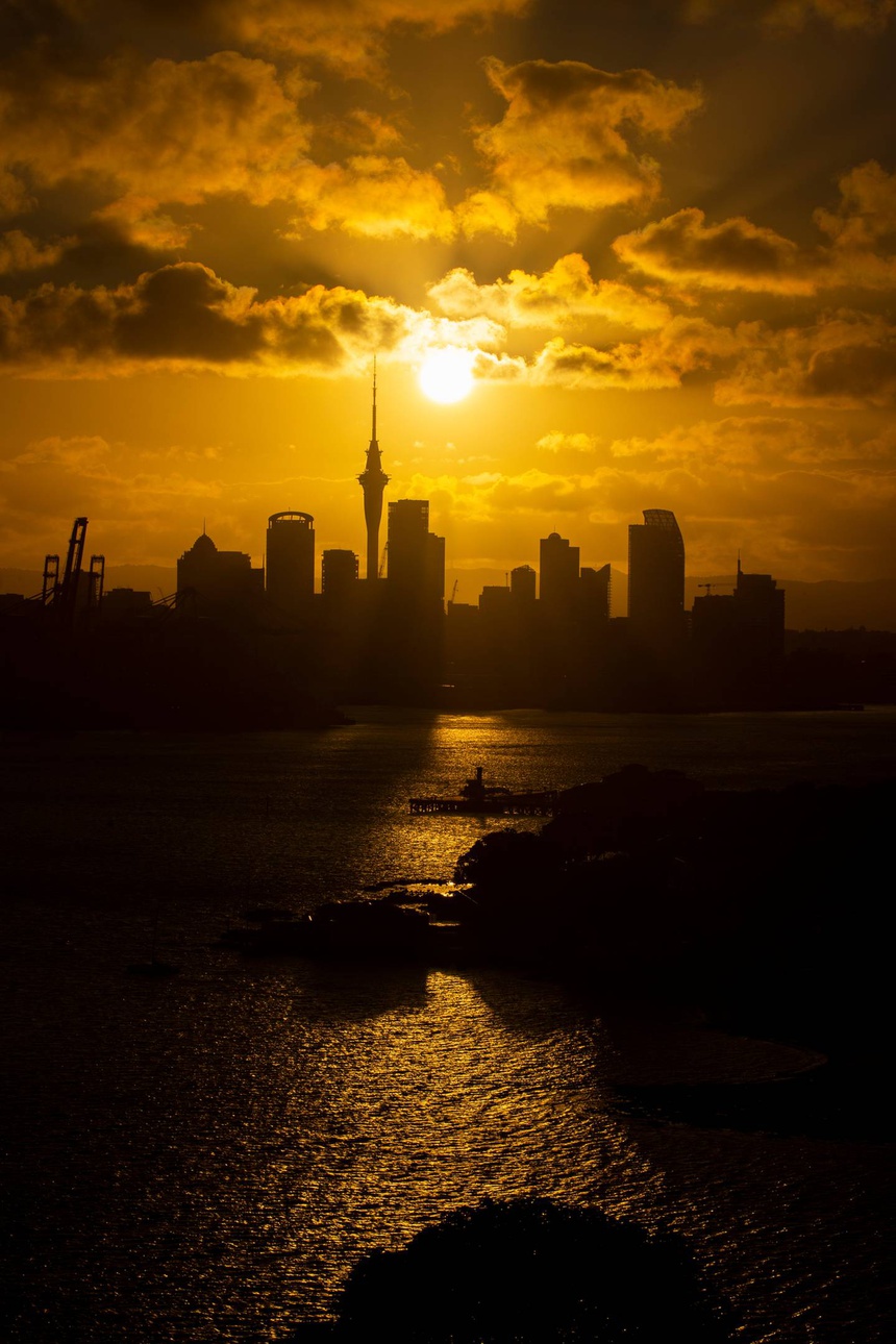 Hoàng hôn cuối cùng của năm 2021 tại Auckland. Ảnh: NZ Herald.