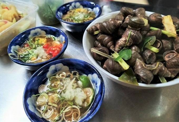 Đây là món ăn vặt đơn giản nhưng có sức hấp dẫn kỳ lạ mỗi khi trời trở lạnh. Chiều tối được ngồi bên bát ốc luộc thơm phức mùi sả, chanh, gẩy con ốc bên trong ra dầm vào thứ nước chấm pha sẵn, vừa ăn vừa đưa đẩy câu chuyện bạn bè. Nước chấm chua cay, mặn, ngọt kèm thêm vài lát ớt, quất tươi quyện với cái giòn sật của con ốc nhỏ nóng hổi chính là hương vị của mùa đông giản dị. Hiện nay, các chủ hàng ngoài bán ốc luộc có thêm nhiều cách chế biến cũng như nguyên liệu đa dạng hơn từ xào me, sốt chanh dây, dùng thêm ngao sò, trứng cút... Bạn có thể tìm thấy các hàng ốc ngon ở những khu phố quanh Đại học Bách Khoa, Chùa Láng, Đình Ngang, Tôn Thất Tùng... Giá mỗi đĩa ốc luộc khoảng 20.000 - 50.000 đồng tùy loại. Ảnh: Khánh Trần
