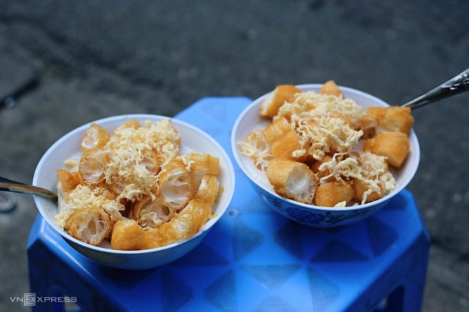 Chè trôi nước hay bánh trôi là món ăn phù hợp với mùa lạnh hơn mùa nóng vì đồ nếp thường khiến cho người ta có cảm giác ấm bụng. Trong một bát chè thường có ba viên trôi nước: nhân đậu xanh, nhân vừng đen và nhân vừng dừa với giá 15.000 - 20.000 đồng. Bát chè nóng hổi "vừa thổi vừa ăn" với ba viên nhỏ, rắc thêm lạc rang, dừa nạo và chút cốt dừa béo bùi cũng đủ để bạn bớt thèm cái ngọt lành giữa mùa đông lạnh. Bánh trôi rất dễ tìm, bạn chỉ cần để ý các hàng chè mùa hè bán chè lạnh, mùa đông thường đổi sang bán chè trôi nước trên các phố Bát Đàn, Đội Cấn, Văn Cao, đê Tô Hoàng... Ảnh: Khánh Trần