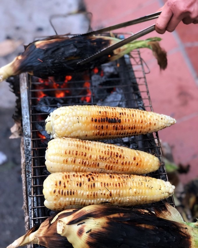 Như các món ăn vặt khác, ngô nướng ở Hà Nội cũng không cầu kỳ, chẳng cần mỡ hành, không cần bơ. Bởi nó ngon ở chính những bắp ngô đã được chọn kỹ và phải là ngô bánh tẻ vừa tới, không quá già để bị sượng cứng và cũng không quá non để bị teo hạt. Khoai nướng là thức quà bên ngoài xấu xí nhưng bên trong thơm ngon, đặc biệt hấp dẫn khi ăn trời lạnh. Riêng ngô, khoai nướng chẳng phải cất công đi tìm, bạn chỉ việc lượn phố những ngày mùa đông sẽ bắt gặp ngay vô số các bếp than hồng bên vỉa hè. Giá mỗi bắp ngô hoặc củ khoai khoảng 10.000 - 15.000 đồng. Ảnh: Huyền Dương