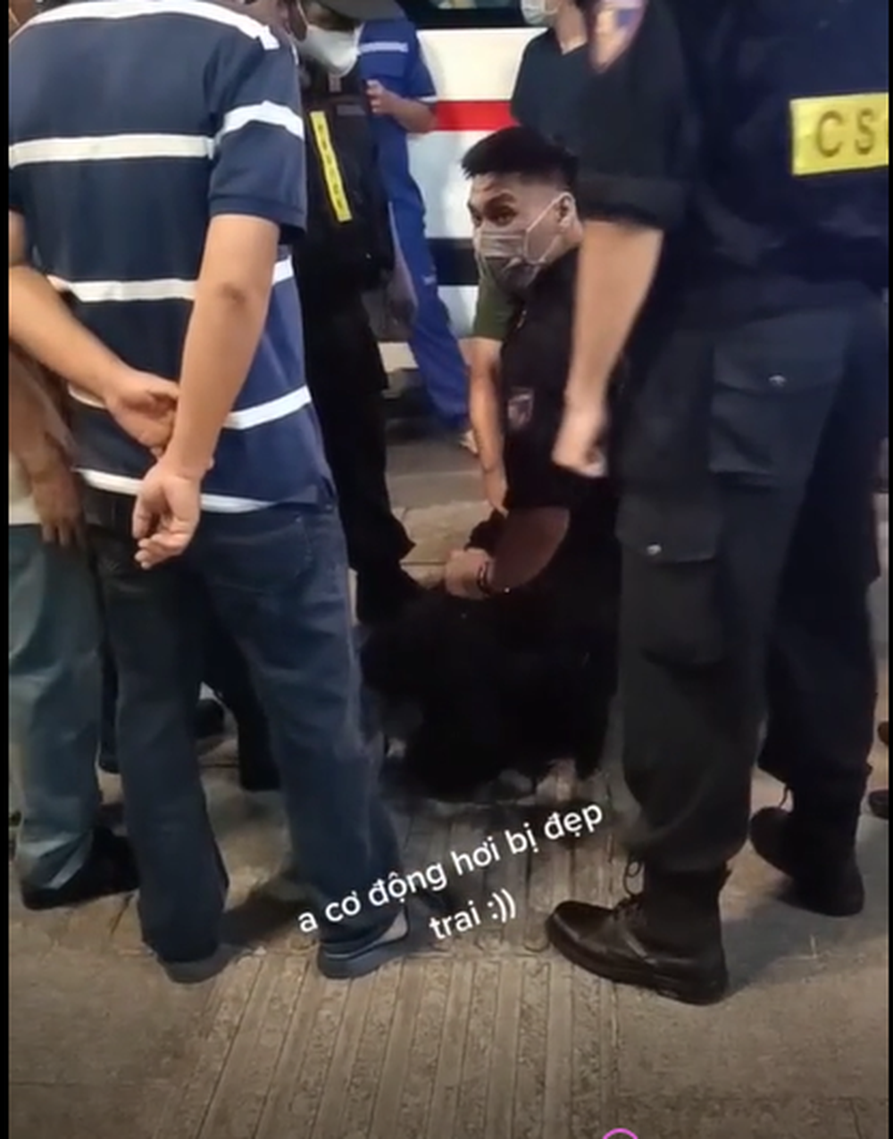 Hình ảnh cho thấy khi công an và bảo vệ đứng vây quanh, cầm tay nam thanh niên chuẩn bị đưa đi thì người này tỏ thái độ vùng vằng. Anh hất tay 1 người đàn ông đứng gần đó, đồng thời giơ bàn tay như chuẩn bị thế võ, hướng về phía chiến sĩ công an. Xô đẩy 1 hồi, thanh niên bướng bỉnh vẫn giữ nguyên thái độ hậm hực.