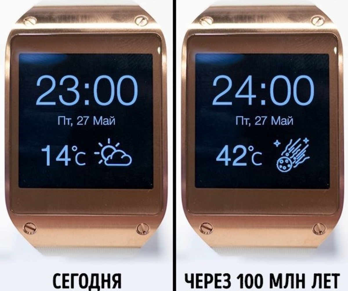 Thời gian ngày càng "nhiều hơn". 620 triệu năm trước, một ngày trên Trái Đất kéo dài 21,9 giờ. Theo thời gian, Trái Đất giảm tốc độ quay của nó, nhưng điều này xảy ra rất chậm, khoảng 70 mili giây trong 100 năm. Như vậy, sẽ phải mất 100 triệu năm để một ngày có 25 giờ.