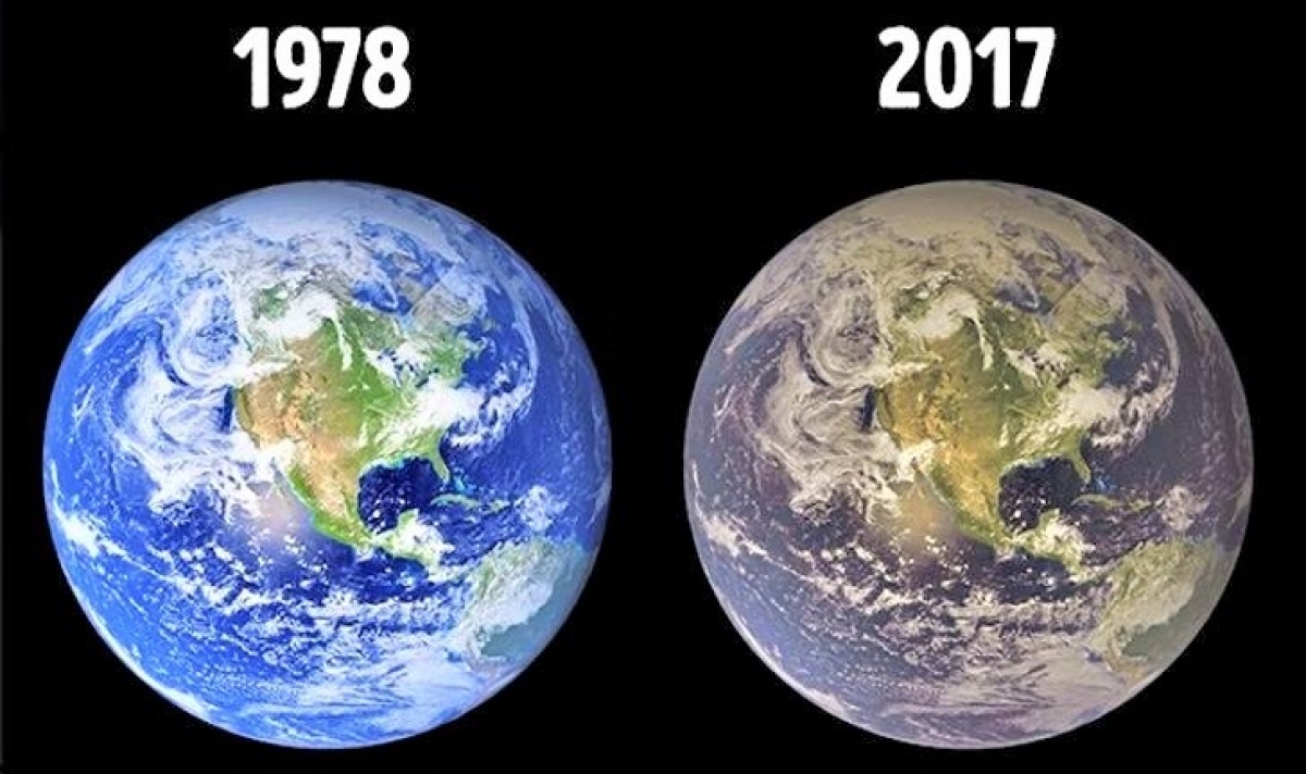 Hành tinh bị ô nhiễm nặng. Có lẽ đây không phải là điều lạ đối với nhiều người. Tuy nhiên, điều thú vị là theo các phi hành gia, tầm nhìn về Trái Đất từ không gian vào năm 1978 rất khác so với hiện tại. Do lượng lớn các mảnh vụn và chất thải không gian, hành tinh có màu xanh lá cây-trắng-xanh chuyển sang màu nâu-xám-đen.