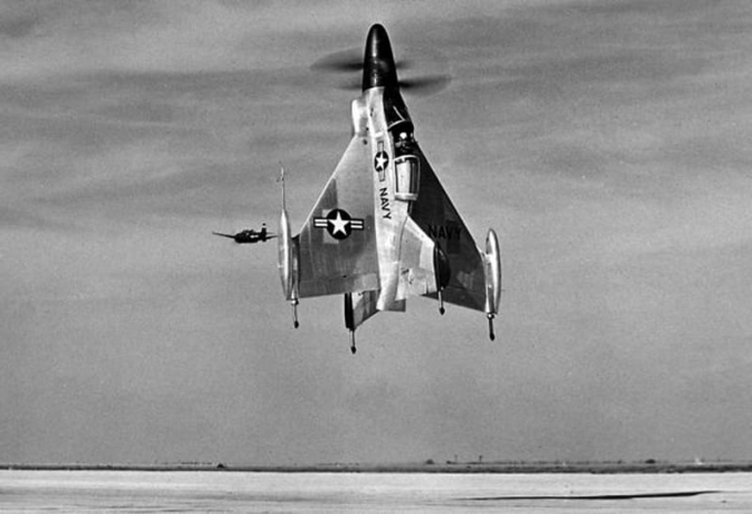 Mẫu tiêm kích hạ cánh kiểu dựng đứng của Mỹ. Để chuẩn bị cho chiến tranh hạt nhân với Liên Xô, Mỹ từ thập niên 1950 phát triển tiêm kích hạ cánh thẳng đứng, ý tưởng được coi là "điên rồ".