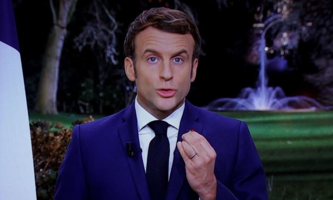 Tổng thống Pháp Emmanuel Macron phát biểu trên truyền hình hôm 31/12/2021. Ảnh: Reuters.