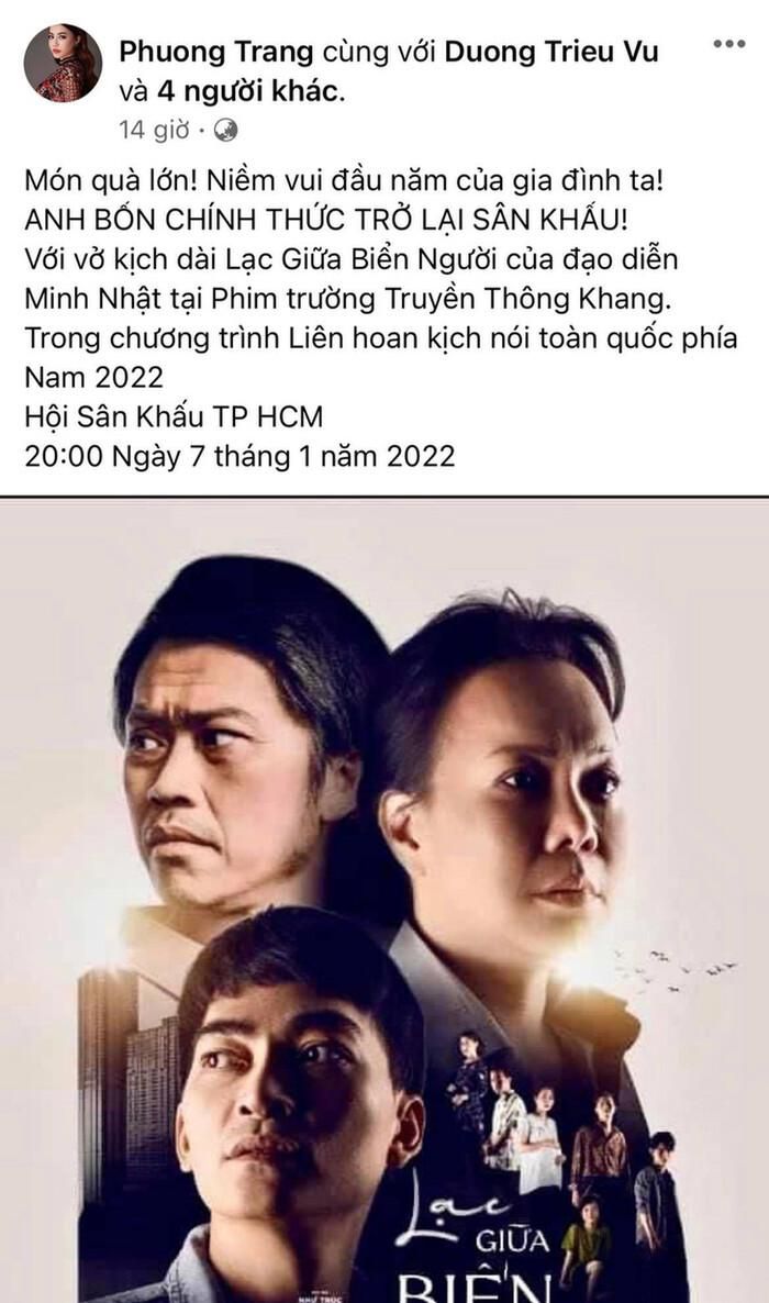 Ngày 4/1, nghệ sĩ Hoài Linh xuất hiện trong một tấm poster do người bạn của anh đăng tải. Trong poster cho biết, nam nghệ sĩ sẽ có hoạt động sân khấu vào ngày 7/1 tới đây. Đây cũng là lần đầu tiên nghệ sĩ Hoài Linh có hoạt động nghệ thuật chính thức sau hơn nửa năm "đóng băng" bởi ồn ào từ thiện.