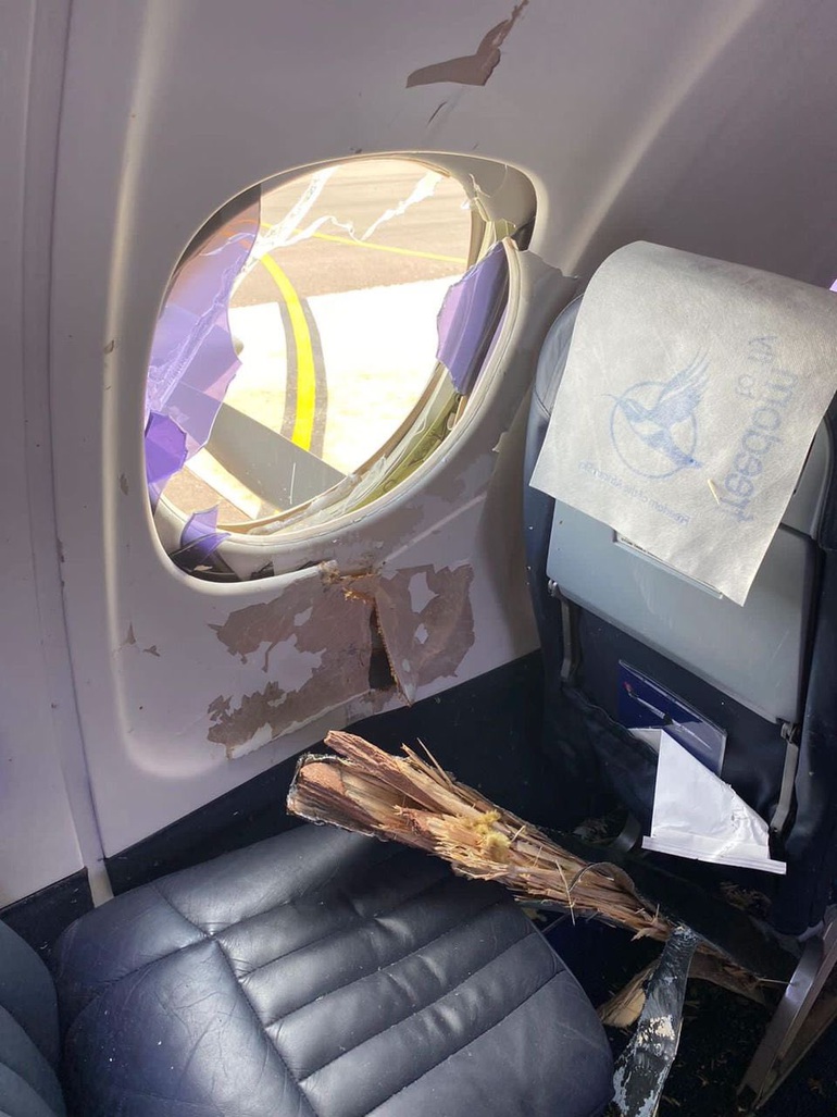Airlink xác nhận chiếc máy bay chở khách 29 chỗ ngồi "gặp phải thiệt hại nghiêm trọng". Các bức ảnh được đăng tải trên mạng xã hội cho thấy tình trạng khoang máy bay bị xuyên thủng giữa không trung bằng chính cánh quạt động cơ của nó.