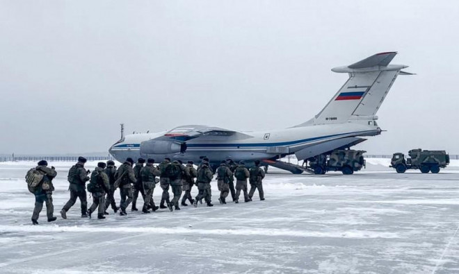 Các quan chức của Bộ Quốc phòng Nga cho biết. 12 máy bay vận tải quân sự chở lính Nga thuộc lực lượng Tổ chức Hiệp ước An ninh Tập thể (CSTO) đã xuất phát từ sân bay Chkalovsky (Nga) đến Kazakhstan. Theo TASS cho hay.