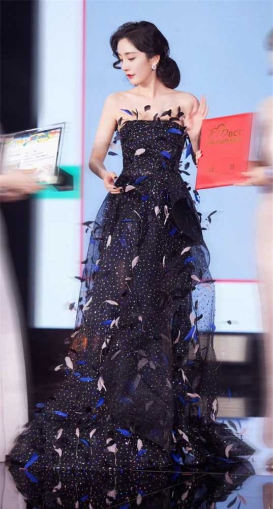Tuy co với chiếc váy lông vũ màu đen vừa rồi, chiếc váy này có phần kém khéo léo hơn một chút, nhưng lại mang hơi hướng cổ điển hơn, giúp người nhìn có thêm góc nhìn mới về Dương Mịch.