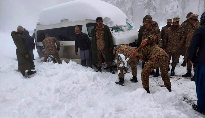 Quân đội tham gia giải cứu du khách mắc kẹt ở Murree hôm 8/1. Ảnh: AP