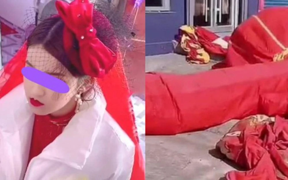 Cô dâu ở thành phố Kiềm Nam, Quý Châu, Trung Quốc cũng được điểm trang lộng lẫy, khoác lên người bộ áo cưới đỏ thắm chờ về nhà chồng. Thế nhưng, mọi nỗi chờ mong của hai nhà đều bị thái độ của chú rể dập tắt.