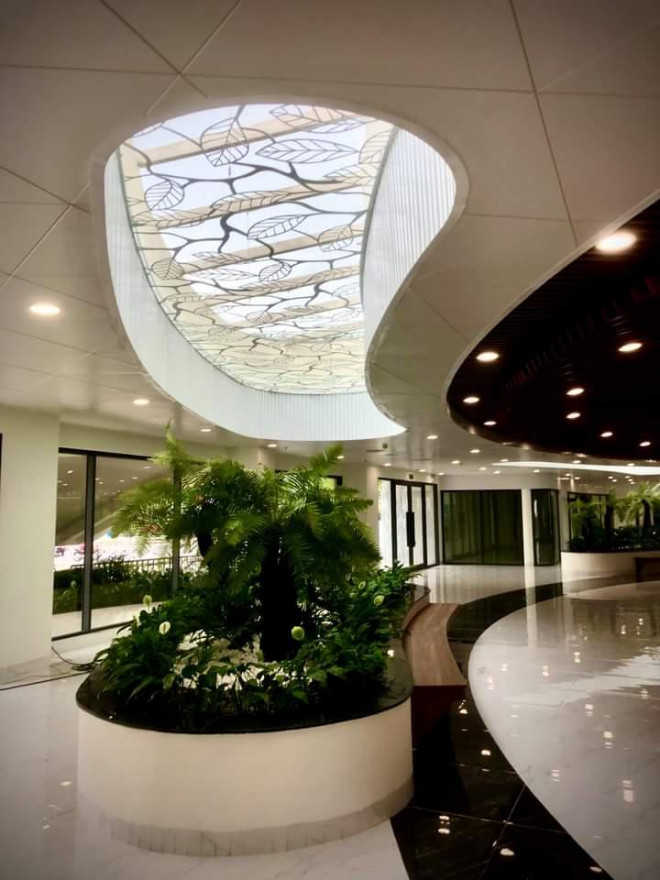 Tổ hợp công trình bao gồm khu công viên cây xanh, thảm cỏ, lối đi bộ, vườn dạo… Mật độ xây dựng 32,8%, công trình gồm 1 tầng hầm, tầng 1, tầng 2, bên trên có thiết kế hệ mái vòm. Chiều cao công trình được nâng cốt từ thấp đến cao, chiều cao tổng cộng là 15,7m.