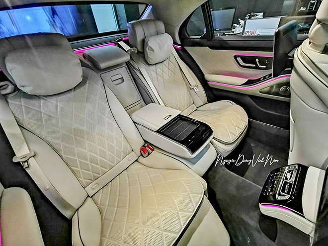 Khoang nội thất chính là nơi hội tụ nhiều nâng cấp nhất trên Mercedes-Benz S-Class thế hệ thứ 7. Lấy cảm hứng từ kiến trúc nội thất và các du thuyền siêu sang, nội thất của S-Class 2022 được nhà sản xuất ví như là nơi nghỉ dưỡng bên cạnh nhà và nơi làm việc của người dùng. Ghế ngồi bọc da Nappa điều khiển điện có nhớ vị trí. Táp-lô bọc gỗ open-pore sang trọng.