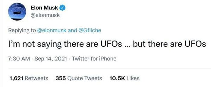 Elon Musk từng viết: "Tôi không nói là có UFO đâu nhé... nhưng mà có UFO đấy".