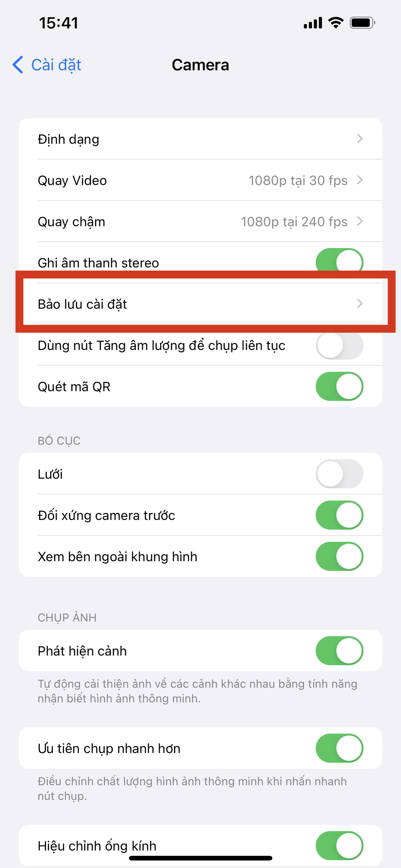 Bạn truy cập vào Cài Đặt -> Camera -> Đối xứng Camera trước. Chỉ 3 bước đơn giản như trên ảnh của bạn sẽ không còn bị lật ngược nữa.