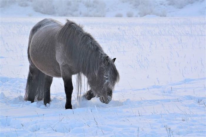 Giống ngựa nhỏ độc đáo Yakut, có thể thích nghi với thời tiết khắc nghiệt nơi đây. (Ảnh: Duy Trinh/TTXVN)
