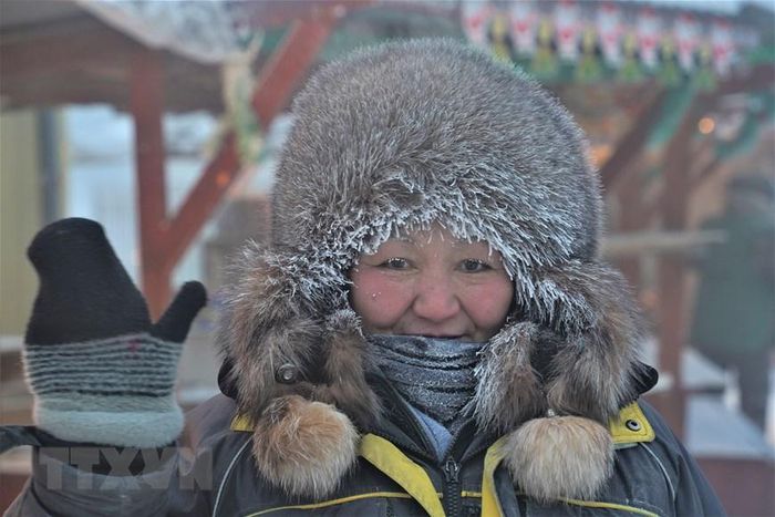 Người bán cá có thể đứng hàng tiếng trong cái giá lạnh -45 độ C. (Ảnh: Duy Trinh/TTXVN)