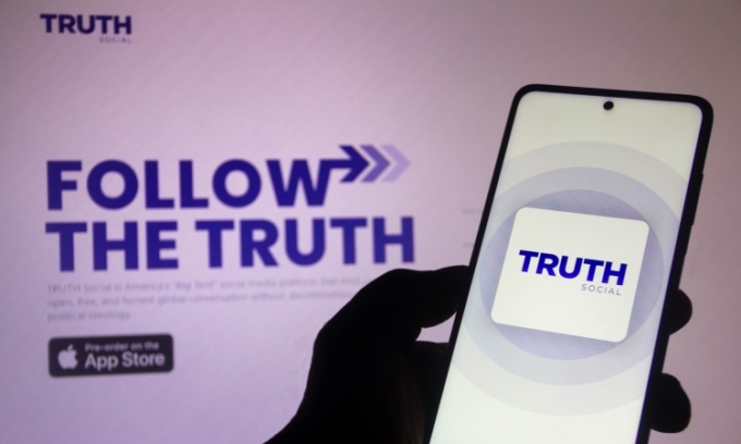 Logo mạng xã hội Truth Social hiển thị trên một màn hình điện thoại hồi tháng 10/2021. Ảnh: Reuters.
