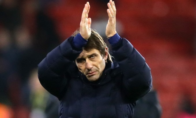 Conte tri ân CĐV sau trận Tottenham gặp Watford ngày 1/1. Ảnh: Reuters.