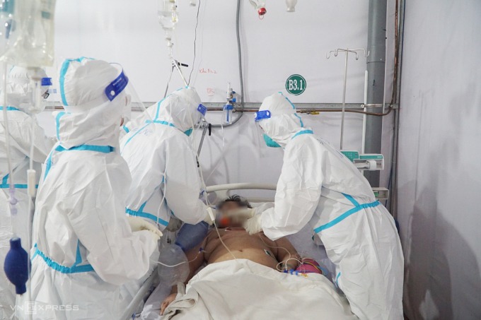 Những F0 phải thở máy, thở oxy, nằm phòng hồi sức tích cực (ICU) có nguy cơ cao mắc các di chứng sau khi khỏi bệnh. Trong ảnh, nhân viên y tế đang chăm sóc một bệnh nhân mắc Covid-19 nặng tại Bệnh viện dã chiến đa tầng Tân Bình, ngày 31/12/2021. Ảnh:Thư Anh