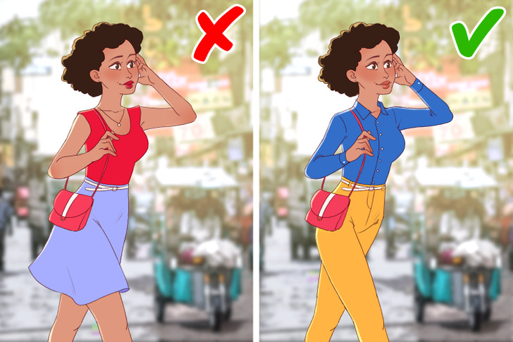 Một trong những điều quan trọng nhất cần ghi nhớ khi đến Ấn Độ là cách bạn thể hiện bản thân. Ấn Độ khá nghiêm khắc trong vấn đề ăn mặc. Vì thế, bạn cần tôn trọng văn hóa và con người nơi đây, trước tiên nên bắt đầu từ trang phục của bản thân. Ngay cả khi trời nóng, bạn cũng đừng mặc đồ quá hở hang. Bằng cách này, bạn có thể bày tỏ sự tôn trọng của mình đối với đất nước này và nó cũng khiến bạn trông giống như một người địa phương.