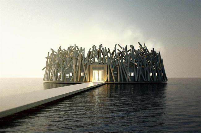 Khách sạn Arctic Bath, Lapland, Thụy Điển: Vào mùa hè, khách sạn nổi này sẽ lướt nhẹ trên sông Lule, nhưng vào mùa đông khi băng đông lại, nó sẽ cố định tại một điểm và có thể tới đây bằng phao. Khách sạn có thiết kế khá thú vị với ngoại thất bằng gỗ đan chéo và có 6 phòng khách, mỗi phòng đều có lối đi thẳng ra mặt nước.