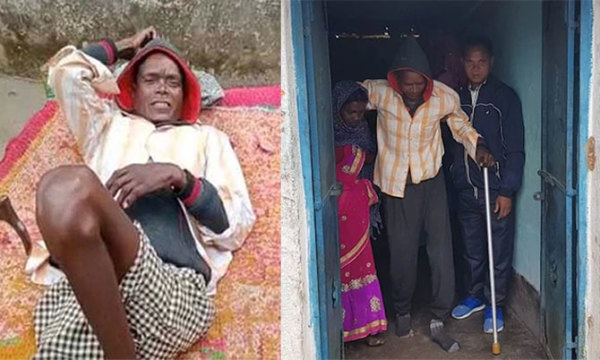 Ông Munda chống gậy đi lại sau 5 năm nằm liệt giường. Ảnh: NDTV