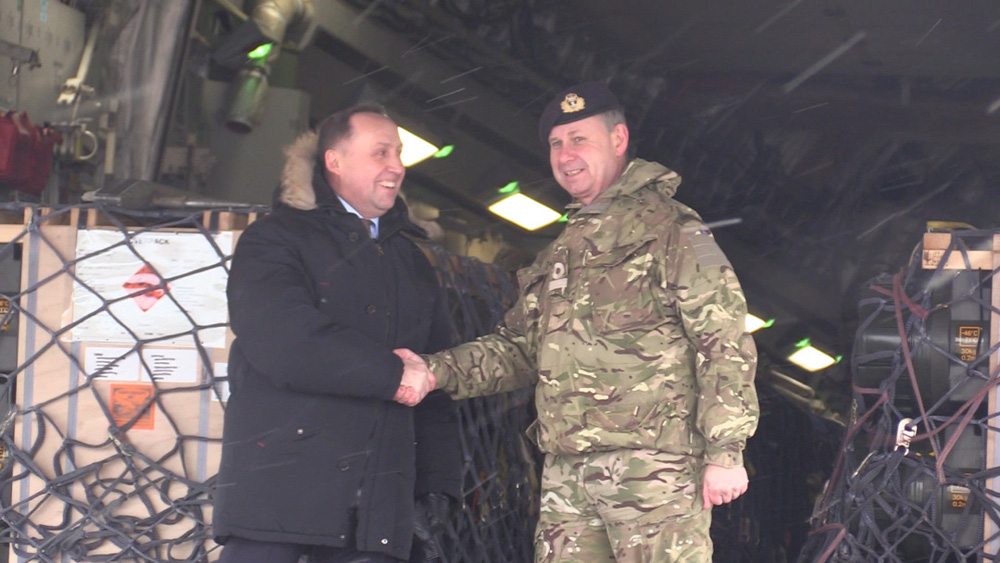 Ông Anatoliy Petrenko (trái) trong buổi bốc dỡ và bàn giao viện trợ quân sự của Anh (Nguồn: Quân đội Ukraine).