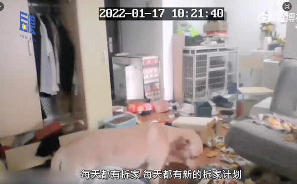 Một phụ nữ được yêu cầu cách ly tập trung 14 ngày trong bối cảnh bùng phát dịch Covid-19 ở thành phố Tây An, Trung Quốc khiến ngôi nhà của cô bị con chó cô nuôi lật tung lên và cô không thể làm gì khác ngoài việc bất lực ngồi xem camera hằng ngày.
