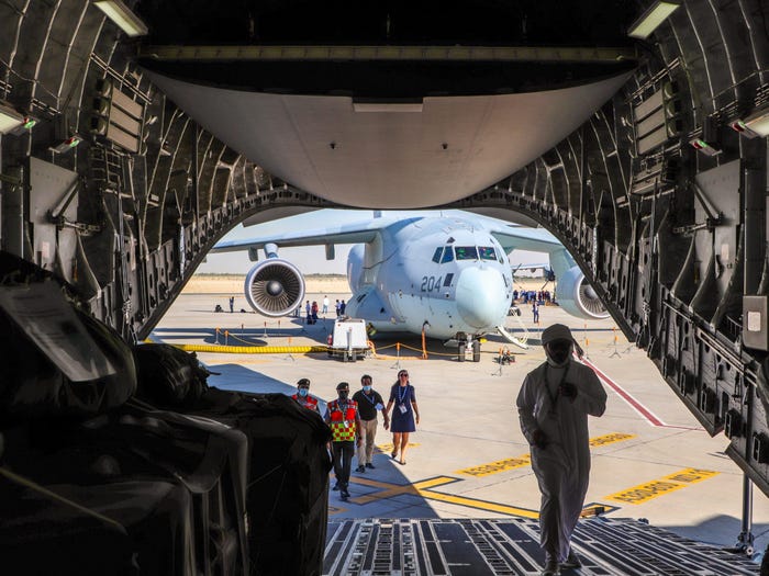 Tất cả hàng hóa được đưa lên qua cửa chở hàng phía sau của C-17, được trang bị một đường dốc để dễ dàng chất và dỡ hàng.
