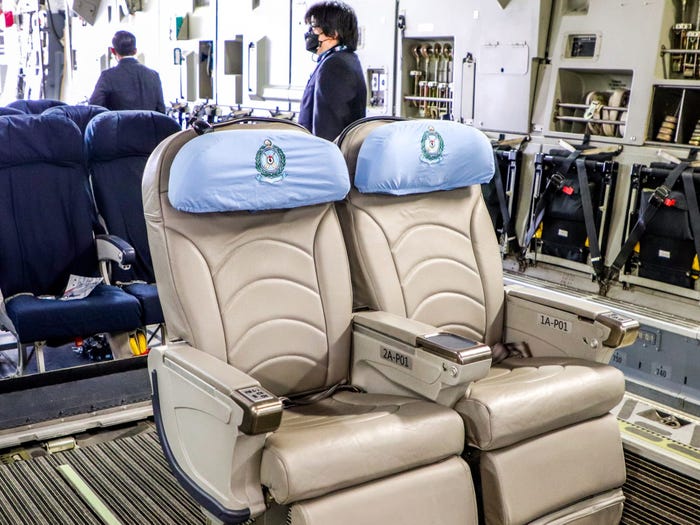 Nhưng nếu có sự hiện diện của những hành khách quan trọng, họ có thể lắp ghế tựa bọc da sang trọng trong cabin. Chúng tương tự như những gì được tìm thấy trong khoang hạng phổ thông cao cấp của một hãng hàng không quốc tế.