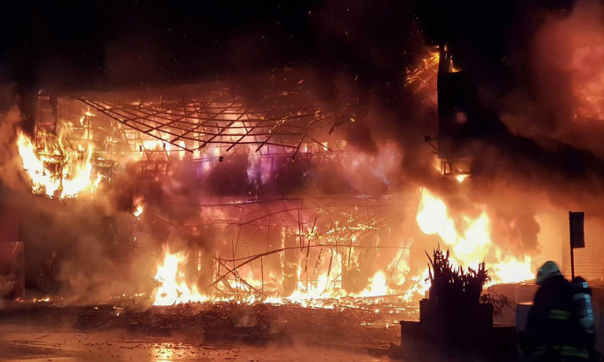 Hiện trường vụ cháy chung cư 13 tầng ở thành phố Cao Hùng, Đài Loan hồi tháng 10/2021. Ảnh: AFP.