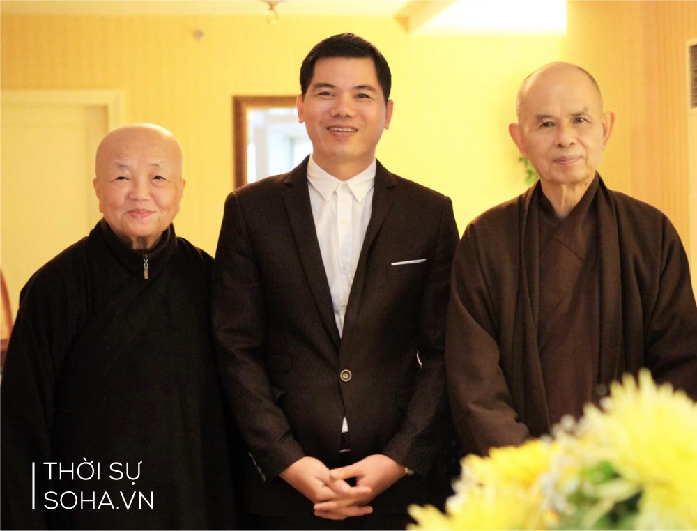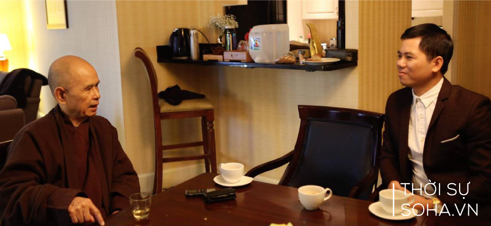 Nhà báo Hoàng Anh Sướng trong một lần trao đổi với Thiền sư Thích Nhất Hạnh