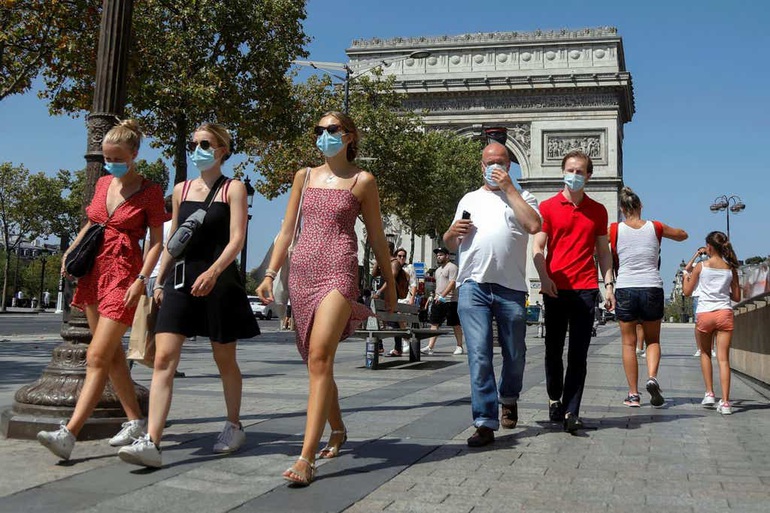 Mọi người đeo khẩu trang khi di chuyển trên đường phố Paris, Pháp (Ảnh: Reuters).