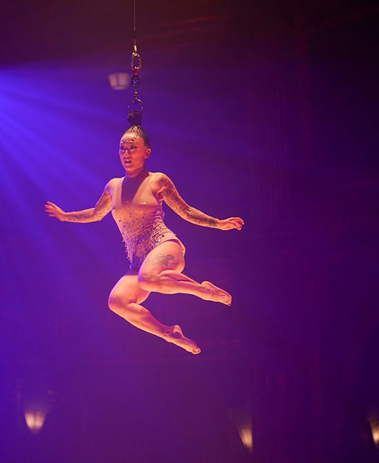 Tiết mục biểu diễn treo tóc của diễn viên xiếc. Ảnh minh hoạ: EMPICS
