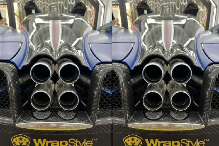 Trong khi đó, một người chuyên chăm sóc và độ siêu xe ở Sài Gòn cũng chia sẻ hình ảnh chụp lại một phần đuôi của chiếc Pagani Huayra hơn 80 tỷ, cho thấy xe đã được "thay áo" mới.
