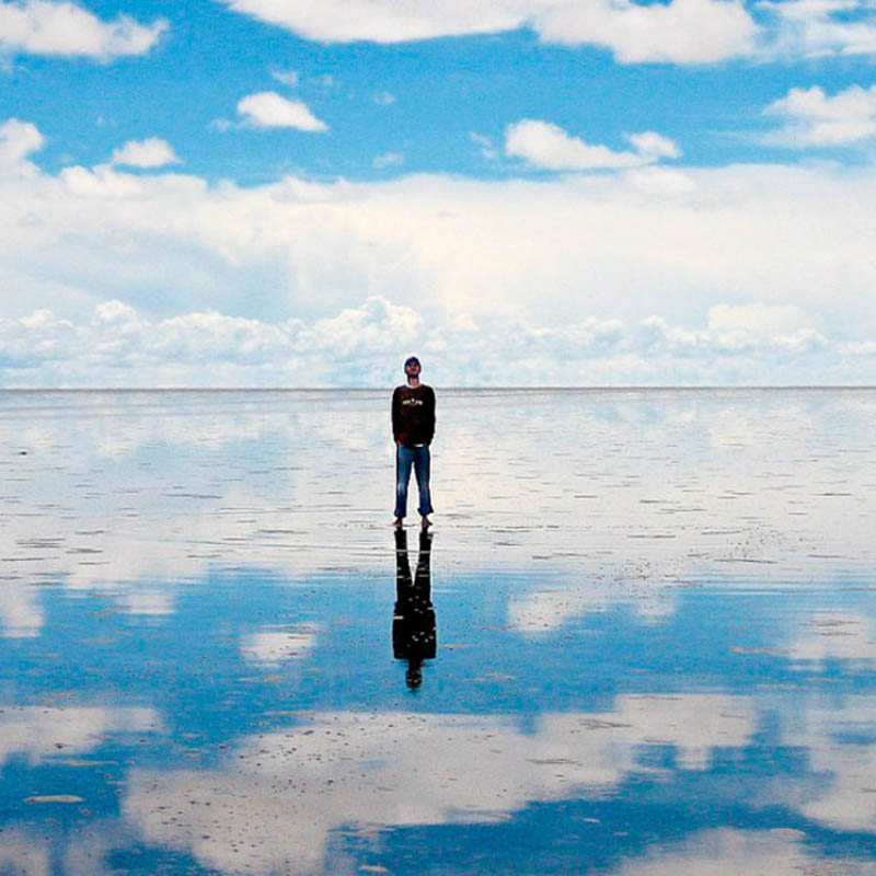 Salar de Uyuni là cánh đồng muối lớn nhất thế giới. Khi đến đây, bạn cảm giác như nó kéo dài đến tận chân trời. Vào một số thời điểm nhất định trong năm, nước sông Salar tràn vào, bao phủ nơi này tạo nên một ảo ảnh như gương. Nơi đây là một địa điểm hoàn hảo dùng làm phông nền để chụp ảnh.