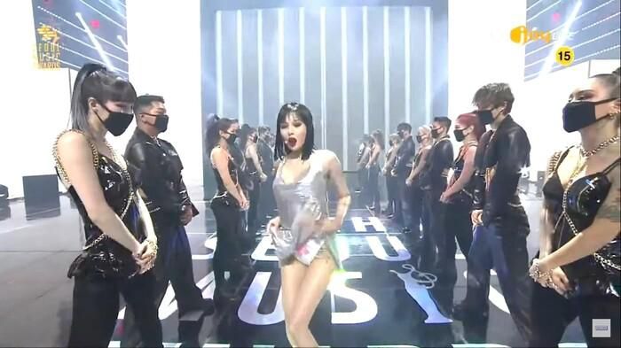 Trong tiết mục tiếp theo, HyunA có màn kết hợp với bạn trai của mình là Dawn. Vốn là một cặp đôi có cá tính mạnh, thế nên sân khấu của cả 2 cũng hết sức đặc biệt. Cận cảnh màn khóa môi của HyunA và Dawn trên sân khấu khiến nhiều người thích thú. Dù cả 2 thường xuyên khoe trên mạng xã hội những khoảnh khắc tình cảm, thế nhưng "bạo gan" trên sân khấu thế này quả thật rất "chất lượng".