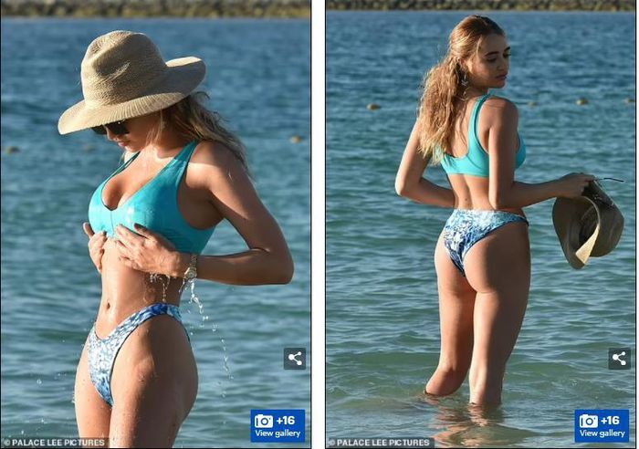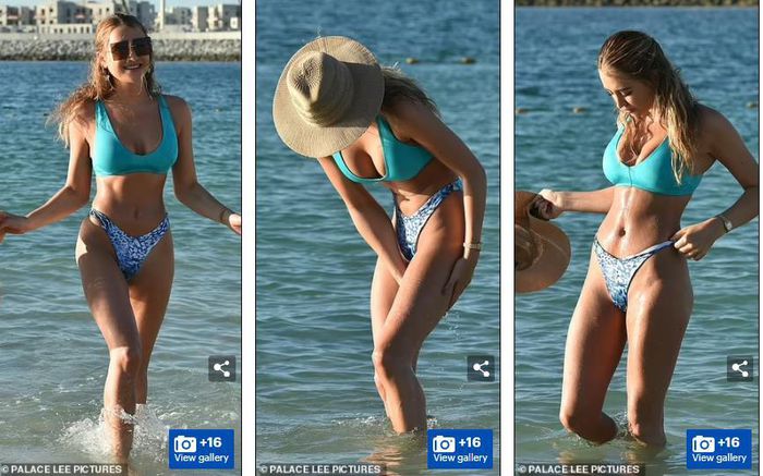 Loạt ảnh mỹ nhân truyền hình nước Anh thả dáng đẹp như mộng với bikini tông xanh giữa nắng gió biển trời Bồ Đào Nha được đăng tải trên Dailymail mới đây gây "sốt".