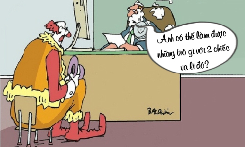 Một người xách hai va li to tướng đến gặp ông chủ gánh xiếc để xin việc làm, ông chủ hỏi: