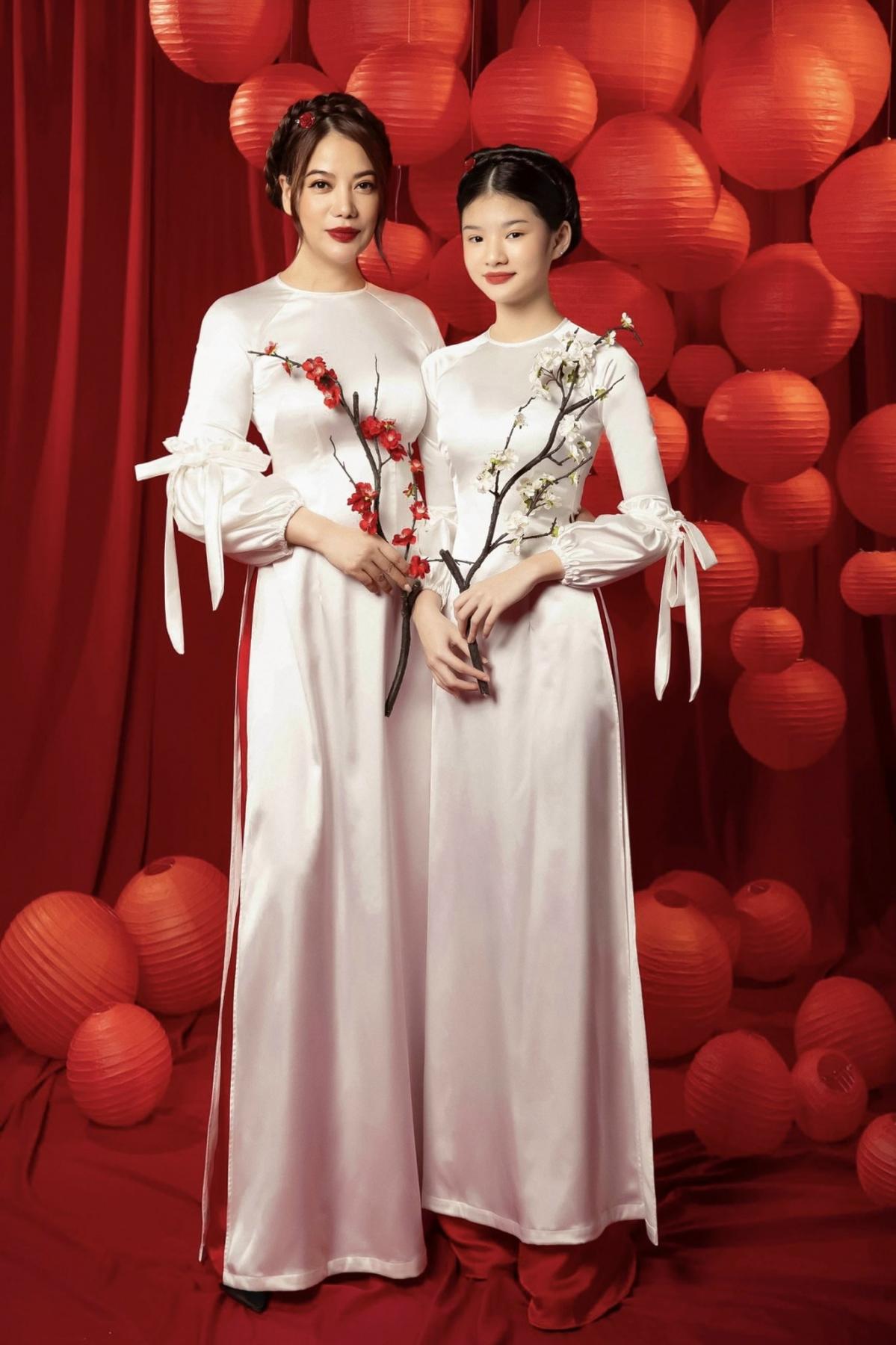 Trương Ngọc Ánh cùng mẹ và con gái diện áo dài Tết. Cả ba thế hệ nhà Trương Ngọc Ánh diện áo dài, cùng khoe sắc trước thềm năm mới.