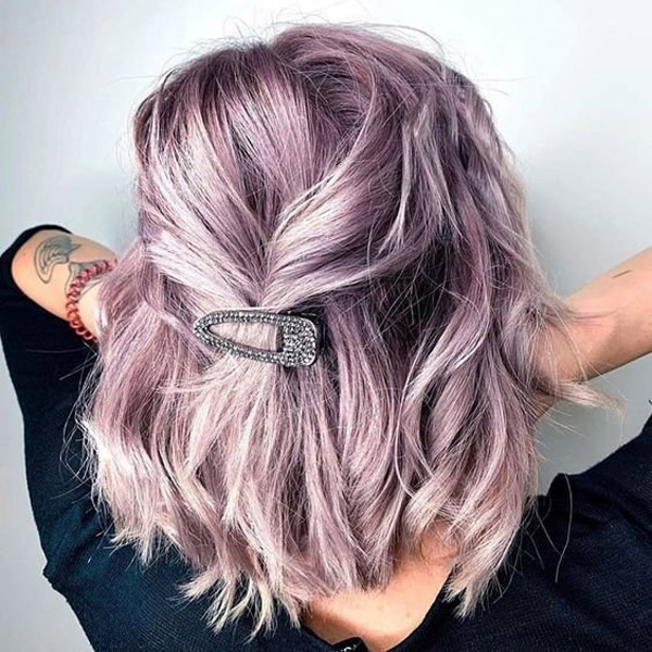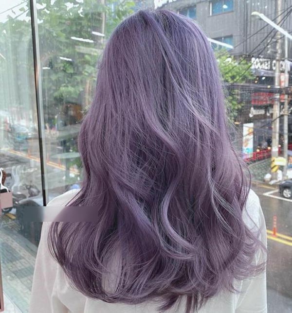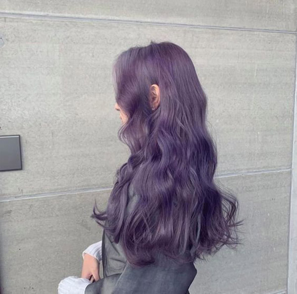 Màu tím xám là sự pha trộn giữa sắc tím và xám giúp mái tóc có gam nhẹ nhàng. Vì tone xám dễ tạo cảm giác nhợt nhạt nên chị em hãy nhớ luôn trang điểm tươi tắn khi nhuộm màu này. Đây được coi là màu tóc đẹp nhất năm 2022.