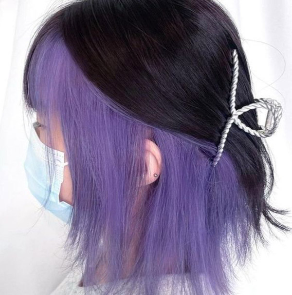 Tóc nhuộm highlight tím và đen đem lại sự đối lập thú vị, giúp phần tóc màu tím càng nổi hơn.